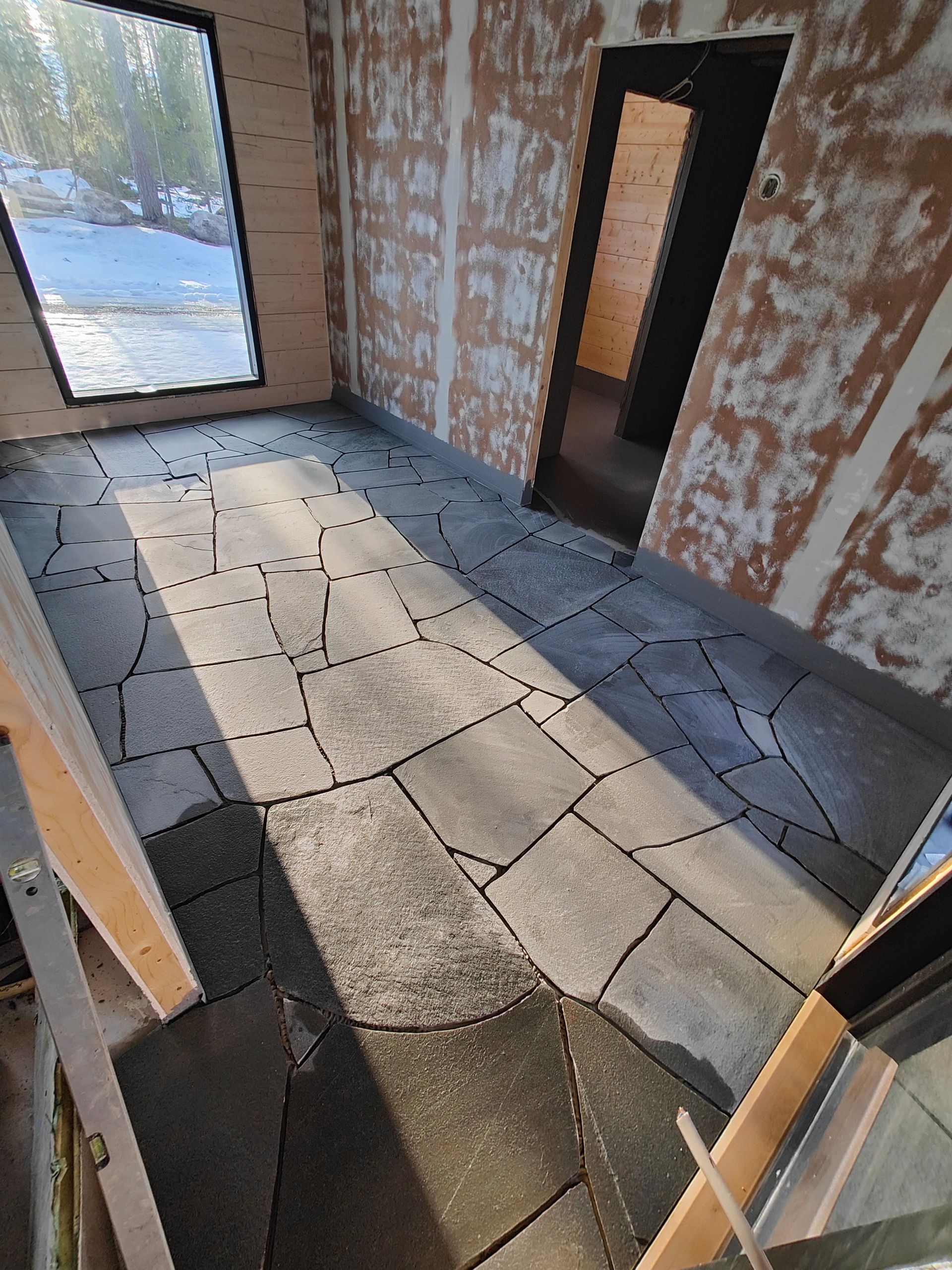 Asiakkaan toimittamien mittojen mukaan valmiiksi työstetyt liuskekiveykset